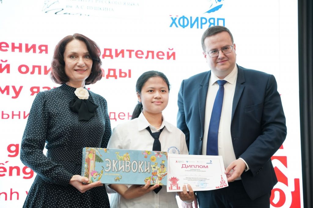 Cũng tại buổi lễ, Viện trưởng Nikita Vladimirovich Gusev và Giám đốc Phân viện Puskin Nguyễn Thị Thu Đạt đã trao giải tới các thí sinh chiến thắng cuộc thi. Trong đó, thí sinh đạt giải Nhất hạng mục học sinh là em Lê Thanh Hải, học sinh trường THPT Chuyên Trần Phú, và thí sinh đạt giải Nhất hạng mục sinh viên là em Phạm Lê Kim Chi, sinh viên Trường Đại học Ngoại ngữ – Đại học Quốc gia Hà Nội.