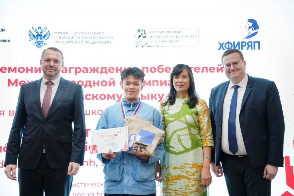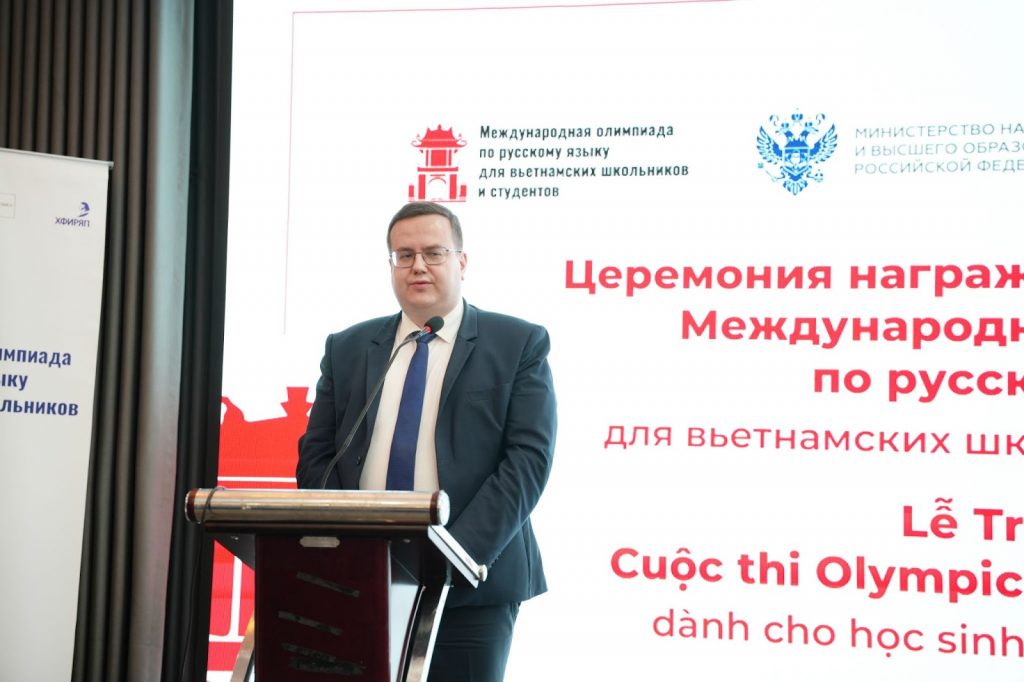 Phát biểu tại lễ trao giải, Phó Cục trưởng Cục Hợp tác Quốc tế Nguyễn Tiến Dũng khẳng định Cuộc thi Olympic tiếng Nga quốc tế là một sân chơi bổ ích dành cho các bạn trẻ yêu tiếng Nga. Phó Cục trưởng cũng bày tỏ hy vọng trải nghiệm tham gia cuộc thi sẽ trở thành hành lý quý giá cho các bạn học sinh, sinh viên, không chỉ mở ra cơ hội học tập, nghiên cứu, mà còn nuôi dưỡng tình yêu tiếng Nga nơi tâm hồn các em.