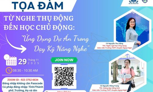 💥💥💥“Từ Nghe Thụ Động Đến Học Chủ Động: Ứng Dụng Dự Án Trong Dạy Kỹ Năng Nghe” - Toạ đàm thuộc khuôn khổ Kênh Hỗ trợ Giáo dục Ngoại ngữ bậc Phổ thông (ULIS CONNECT)⏰ Thời gian: 08h30 -…