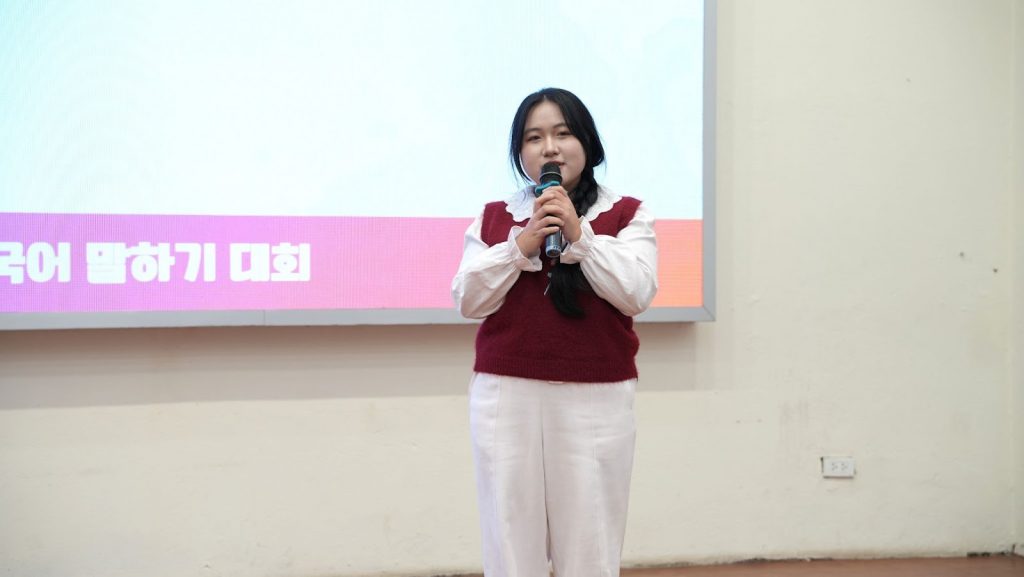 Sau mỗi phần thi, các thầy cô trong Ban Giám khảo đã đưa ra những nhận xét cụ thể, đánh giá cao sự tự tin, cách triển khai ý tưởng và khả năng xử lý ngôn ngữ của nhiều thí sinh. Những nhận xét mang tính chuyên môn, nhưng gần gũi và mang tính hỗ trợ đã giúp các bạn trẻ thêm động lực và định hướng rõ ràng hơn trong việc phát triển kỹ năng tiếng Hàn.