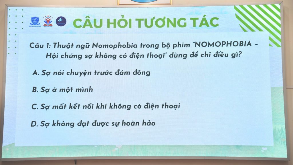 Trong phần tiếp theo của chương trình, Ban Tổ chức đã lần lượt công bố và vinh danh giải thưởng dành cho các đội thi có tác phẩm nổi bật tại Liên hoan phim. Trong đó, giải Nhất đã được trao cho nhóm 4 với tác phẩm Nomophobia – hội chứng sợ không có điện thoại. Bộ phim gây ấn tượng bởi cách tiếp cận gần gũi, phản ánh một vấn đề tâm lý phổ biến trong đời sống hiện đại, đặc biệt là ở giới trẻ, qua đó góp phần nâng cao nhận thức về sức khỏe tinh thần trong bối cảnh công nghệ phát triển mạnh mẽ.