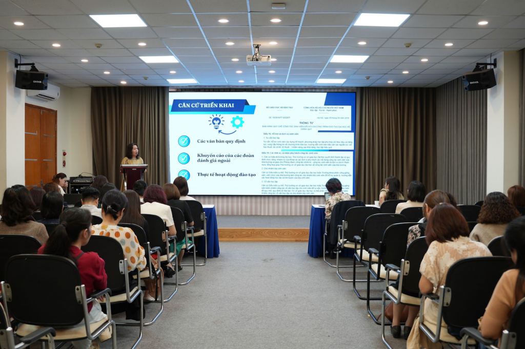 Tham dự buổi tập huấn có Phó Hiệu trưởng Hà Lê Kim Anh; Phó Trưởng phòng Đào tạo và Người học Nguyễn Quỳnh Hoa; cùng các thầy cô cố vấn học tập. Khách mời của chương trình là Phó Trưởng phòng Đào tạo và Công tác người học Trường Đại học Khoa học Xã hội và Nhân văn – TS. Nguyễn Thị Tuyết Mai. Buổi tập huấn là hoạt động có ý nghĩa thiết thực, góp phần nâng cao chất lượng công tác quản lý, hỗ trợ và đồng hành cùng người học trong quá trình học tập tại Nhà trường.