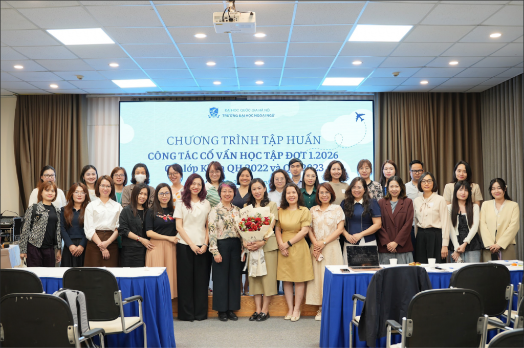 Khép lại chương trình, các đại biểu, khách mời cùng đội ngũ cố vấn học tập đã chụp ảnh lưu niệm, ghi lại những khoảnh khắc ý nghĩa của buổi tập huấn. Hoạt động không chỉ đánh dấu sự thành công của chương trình mà còn thể hiện tinh thần gắn kết, sẻ chia và đồng hành giữa các đơn vị, cùng hướng tới mục tiêu nâng cao chất lượng công tác hỗ trợ người học tại Trường Đại học Ngoại ngữ, ĐHQGHN.