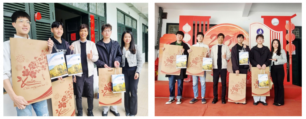 Tham dự buổi chúc Tết, về phía Khoa Ngôn ngữ – Văn hóa Việt Nam và Đông Nam Á có TS. Trần Hữu Trí – Trưởng khoa, ThS. Nguyễn Thị Vân Chi – Phó trưởng khoa cùng các thầy cô và chuyên viên phụ trách sinh viên quốc tế. Thầy cô đã trực tiếp tới Ký túc xá để thăm hỏi tình hình sinh hoạt, học tập của các sinh viên. Tại đây, thầy Trí ân cần gửi lời chúc mừng năm mới, động viên các em yên tâm học tập, sinh sống tại Việt Nam. Những phần quà Tết ý nghĩa, thể hiện sự quan tâm, sẻ chia của Nhà trường đối với sinh viên quốc tế trong dịp lễ truyền thống đã được các thầy cô trao tận tay các em.