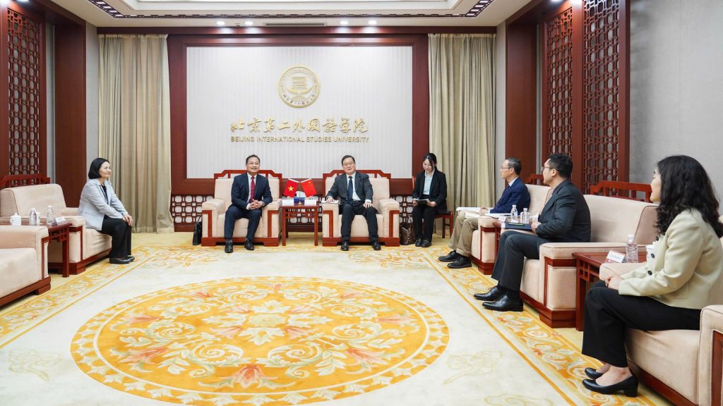 Ngày 13/4/2026, đoàn công tác của Trường Đại học Ngoại ngữ – Đại học Quốc gia Hà Nội do Phó Hiệu trưởng Hoa Ngọc Sơn dẫn đầu đã có chuyến thăm, làm việc và ký kết thỏa thuận hợp tác với Trường Đại học Ngoại ngữ Bắc Kinh 2, Trung Quốc.