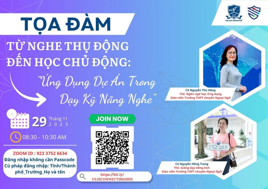 💥💥💥“Từ Nghe Thụ Động Đến Học Chủ Động: Ứng Dụng Dự Án Trong Dạy Kỹ Năng Nghe” – Toạ đàm thuộc khuôn khổ Kênh Hỗ trợ Giáo dục Ngoại ngữ bậc Phổ thông (ULIS CONNECT)