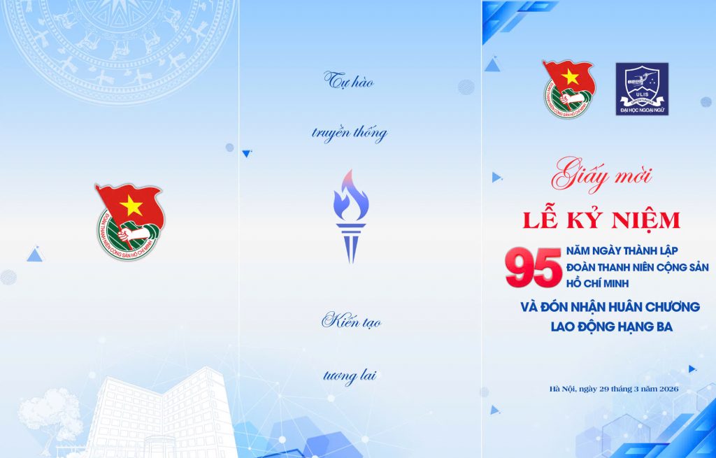 Nhân dịp kỷ niệm 95 năm Ngày thành lập Đoàn TNCS Hồ Chí Minh (26/3/1931 – 26/3/2026) và vinh dự đón nhận Huân chương Lao động hạng Ba, Ban Chấp hành Đoàn Trường Đại học Ngoại ngữ – ĐHQGHN trân trọng kính mời các anh/chị trở về tham dự chương trình, cùng gặp gỡ, ôn lại kỷ niệm và chia sẻ niềm tự hào chung của tuổi trẻ ULIS.