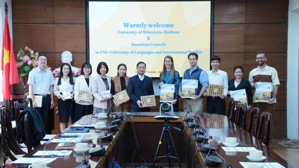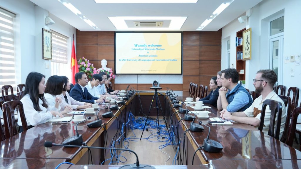 Ngày 27/10/2025, Trường Đại học Ngoại ngữ – Đại học Quốc gia Hà Nội đã làm việc với Trường Đại học Wisconsin-Madison và Tổ chức American Councils (Hoa Kỳ).