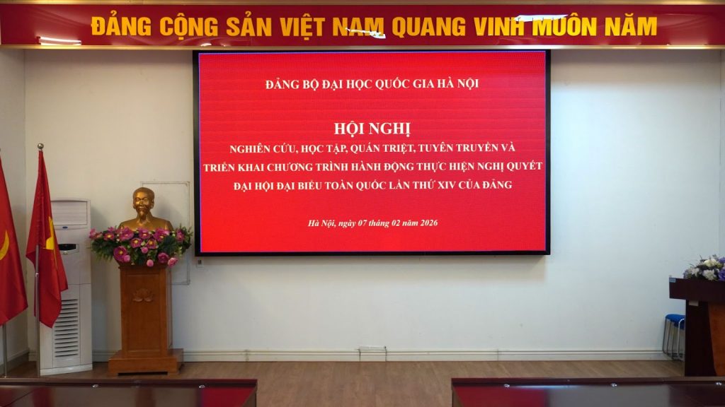 Ngày 07/02/2026, Tập thể lãnh đạo Trường cùng các đồng chí Ủy viên Ban Chấp hành Đảng bộ, cấp ủy các chi bộ trong toàn Đảng bộ Trường Đại học Ngoại ngữ, Đại học Quốc gia Hà Nội đã tham dự buổi tiếp sóng Hội nghị trực tuyến toàn quốc nghiên cứu, học tập, quán triệt và triển khai thực hiện Nghị quyết Đại hội đại biểu toàn quốc lần thứ XIV của Đảng.
