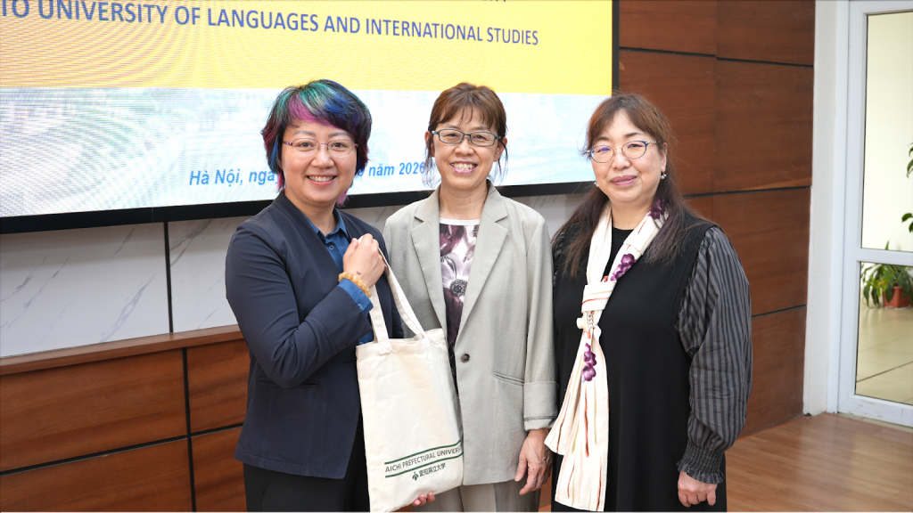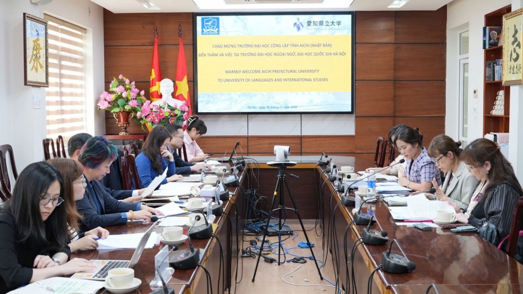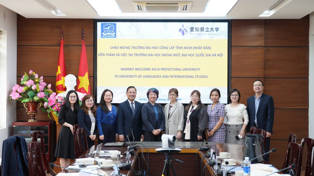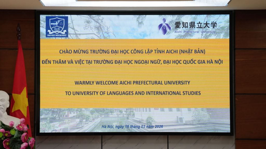 Ngày 16/03/2026, Trường Đại học Ngoại ngữ – Đại học Quốc gia Hà Nội đã tổ chức tiếp và làm việc với Trường Đại học Công lập tỉnh Aichi (Nhật Bản) nhằm thảo luận về định hướng hợp tác trong thời gian tới.