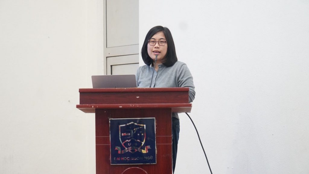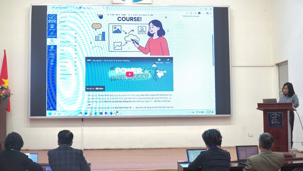 Tiếp nối chương trình, cô Trần Thị Bích Ngọc đã giới thiệu khóa học mẫu nhằm giúp người tham dự hình dung cấu trúc và cách tổ chức một học phần trên nền tảng Canvas.