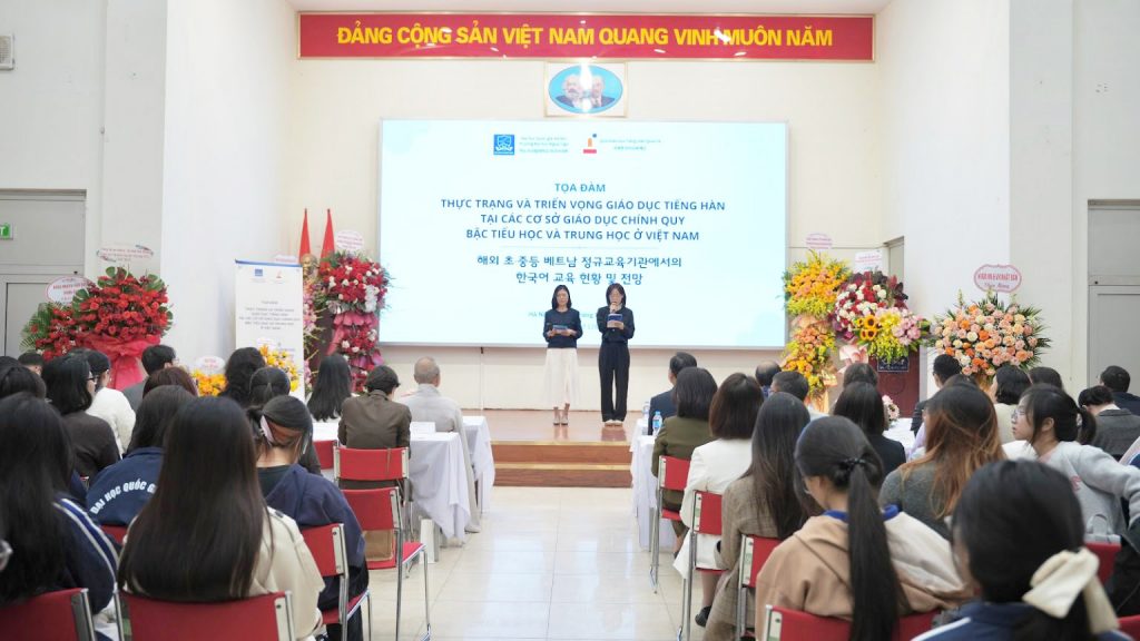Ngày 19/12/2025, tại Hội trường Vũ Đình Liên, Trường Đại học Ngoại ngữ – Đại học Quốc gia Hà Nội phối hợp cùng Quỹ Giáo dục Tiếng Hàn Quốc tế đã tổ chức Tọa đàm “Thực trạng và triển vọng giáo dục tiếng Hàn tại các cơ sở giáo dục chính quy bậc Tiểu học và Trung học ở Việt Nam”. Chương trình đã thu hút sự quan tâm và tham gia của các nhà quản lý, nhà nghiên cứu, nhà giáo và sinh viên.