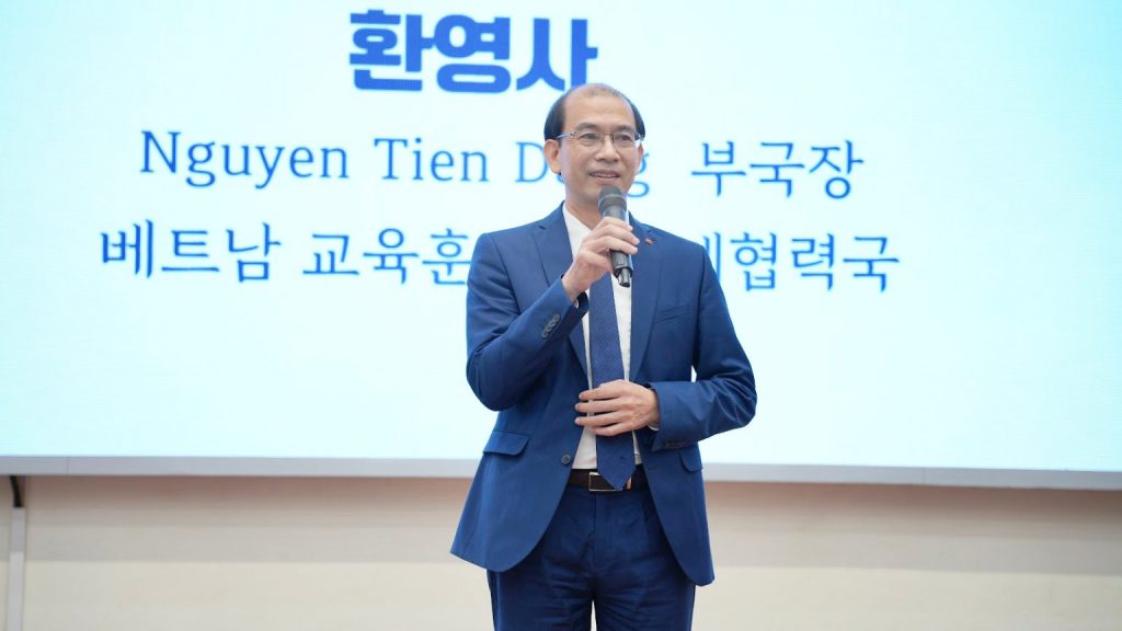 Tiếp theo chương trình, Phó Cục trưởng Cục Hợp tác Quốc tế, Bộ Giáo dục và Đào tạo Nguyễn Tiến Dũng đã chia sẻ về bối cảnh phát triển của giáo dục tiếng Hàn tại Việt Nam. Đồng thời, ông khẳng định Bộ Giáo dục và Đào tạo luôn mong muốn hỗ trợ và tạo điều kiện thuận lợi cho việc triển khai, phát triển các chương trình giảng dạy tiếng Hàn tại Việt Nam.