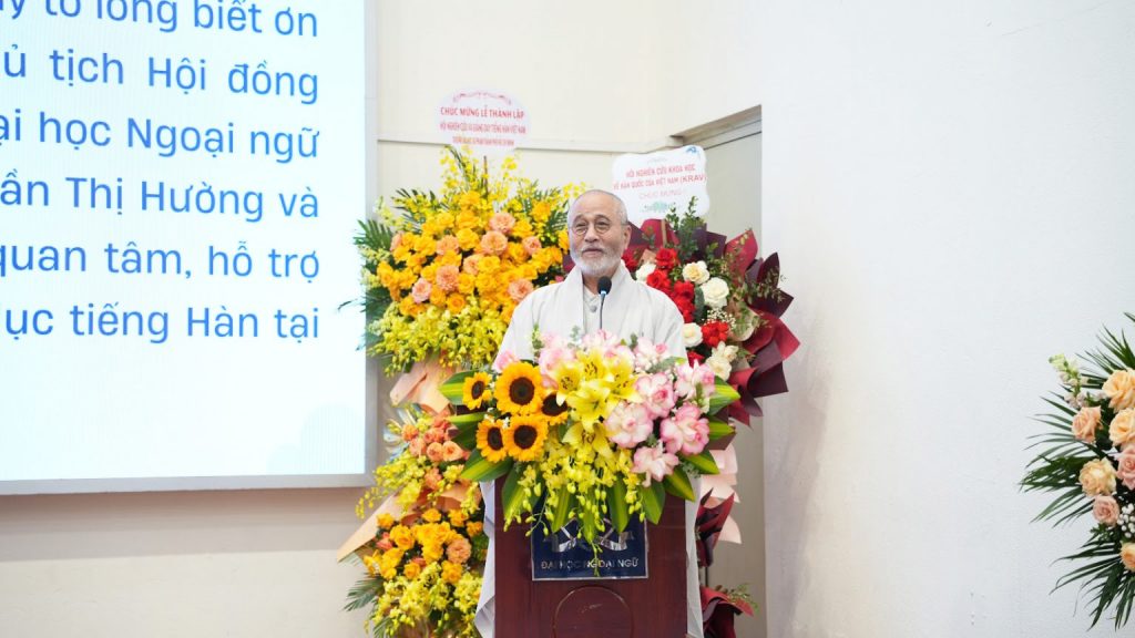 Cũng trong phần phát biểu chào mừng, Chủ tịch Quỹ Giáo dục Tiếng Hàn Quốc tế Lim Yeong Dam và Trưởng ban hỗ trợ Giáo dục nước ngoài, Bộ Giáo dục Hàn Quốc Kim Joo Young gửi lời cảm ơn sâu sắc tới Bộ Giáo dục và Đào tạo VIệt Nam, Trường Đại học Ngoại ngữ – ĐHQGHN cũng như các thầy cô giáo trên cả nước đã góp phần thúc đẩy, phát triển giáo dục tiếng Hàn tại Việt Nam. Hai vị khách tin tưởng tọa đàm có thể gợi mở, đề xuất ra nhiều hướng phát triển đào tạo tiếng Hàn hơn nữa cho các cơ sở giáo dục chính quy bậc Tiểu học và Trung học ở Việt Nam.