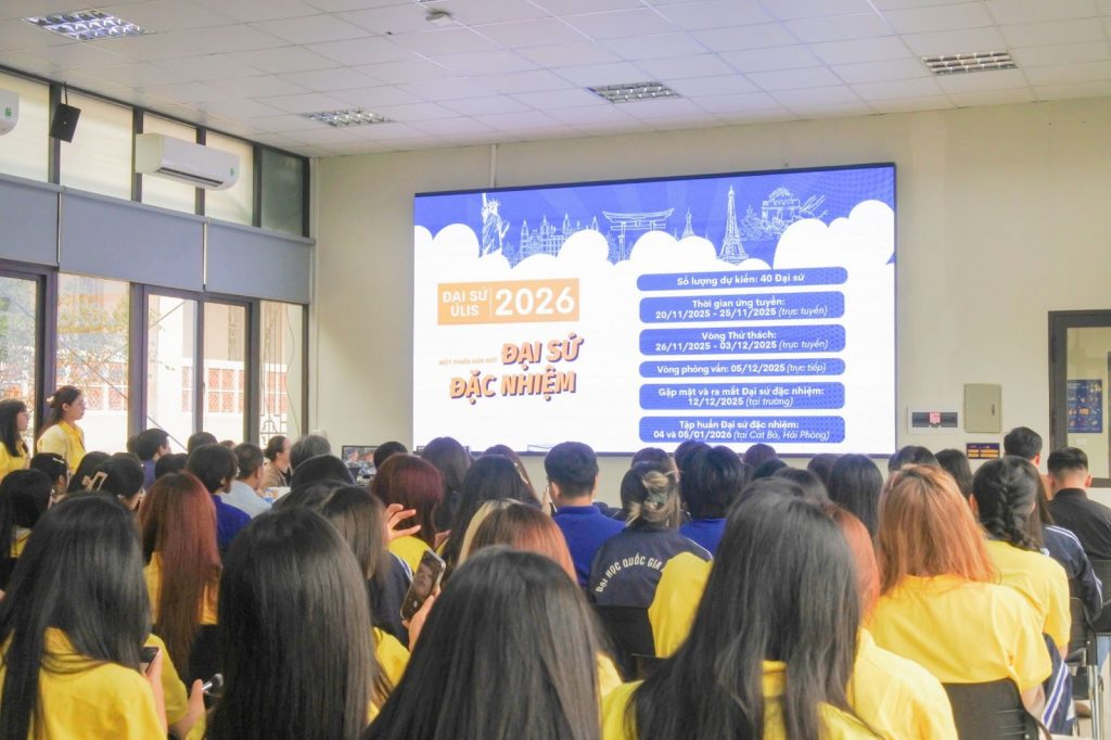 Tiếp nối chương trình, Thường trực Ban Tổ chức Chương trình Đại sứ ULIS Nguyễn Thị Ngọc Anh đã giới thiệu kế hoạch triển khai Đại sứ Đặc nhiệm 2026. Trên cơ sở kế thừa và đổi mới từ Chương trình Đại sứ Tuyển sinh những năm trước, Chương trình Đại sứ Đặc nhiệm năm nay dự kiến có 46 Đại sứ đến từ 46 trường THPT trên cả nước, với 4 nhóm nhiệm vụ, hướng tới mục tiêu “Tinh gọn – Hiệu quả” trong toàn bộ hoạt động. Sứ mệnh của Đại sứ Đặc nhiệm 2026 là tiếp tục thể hiện giá trị của Đại sứ ULIS, lan tỏa hình ảnh Nhà trường và tạo cơ hội giúp các bạn phát triển bản thân trong suốt nhiệm kỳ.