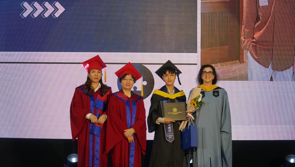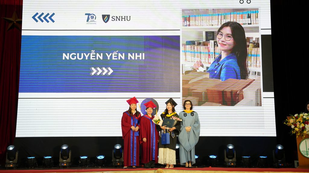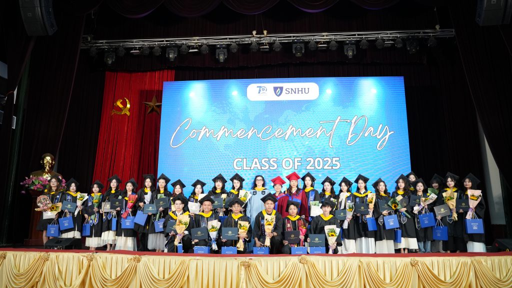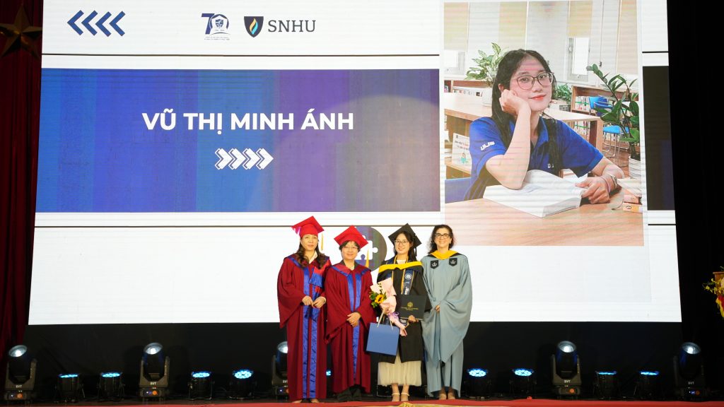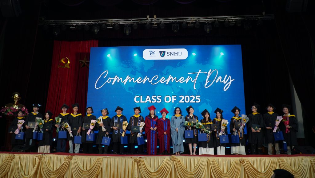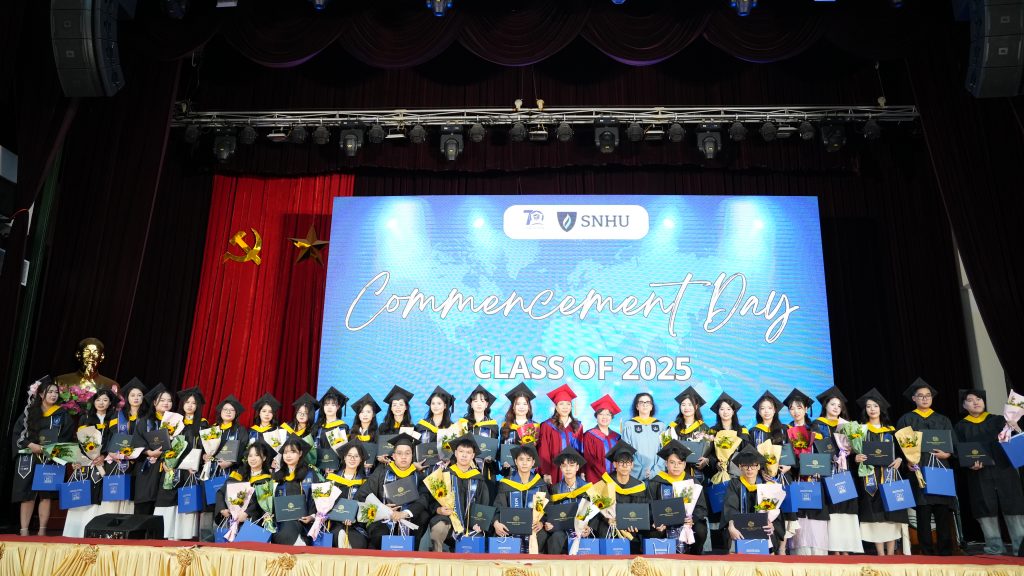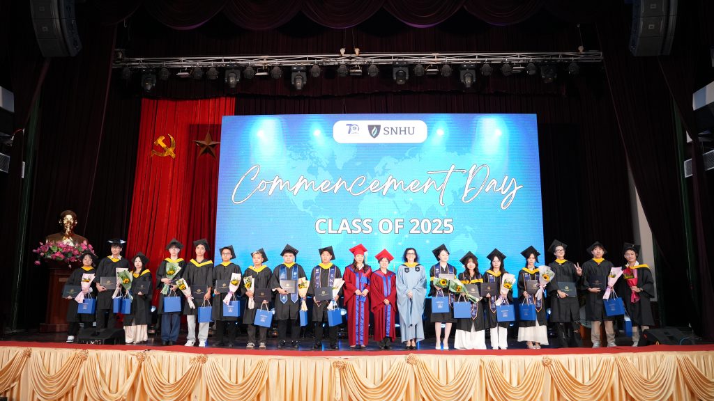 Cũng tại buổi lễ, đại diện Trường Đại học Southern New Hampshire, bà Rachael Sears xúc động gửi lời chúc mừng và lời nhắn nhủ tới các tân cử nhân: “Luôn giữ tinh thần ham học hỏi, lãnh đạo bằng sự chính trực và lòng nhân ái, và dũng cảm tạo dựng con đường của riêng mình”. Bà cũng khẳng định các tân cử nhân là minh chứng cho sức mạnh của giáo dục toàn cầu và thể hiện sự mong chờ được thấy những điều tuyệt vời các bạn đem tới.