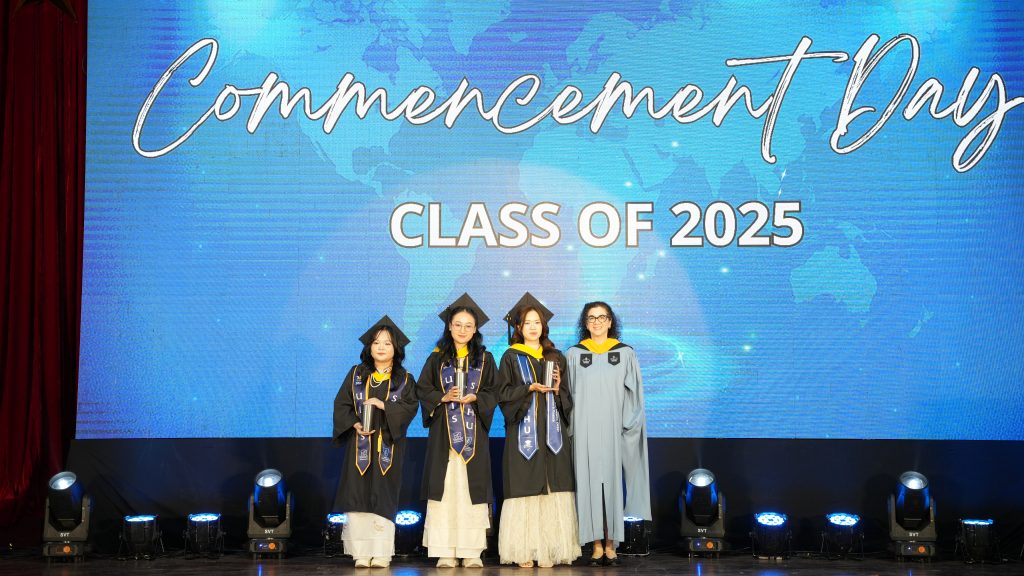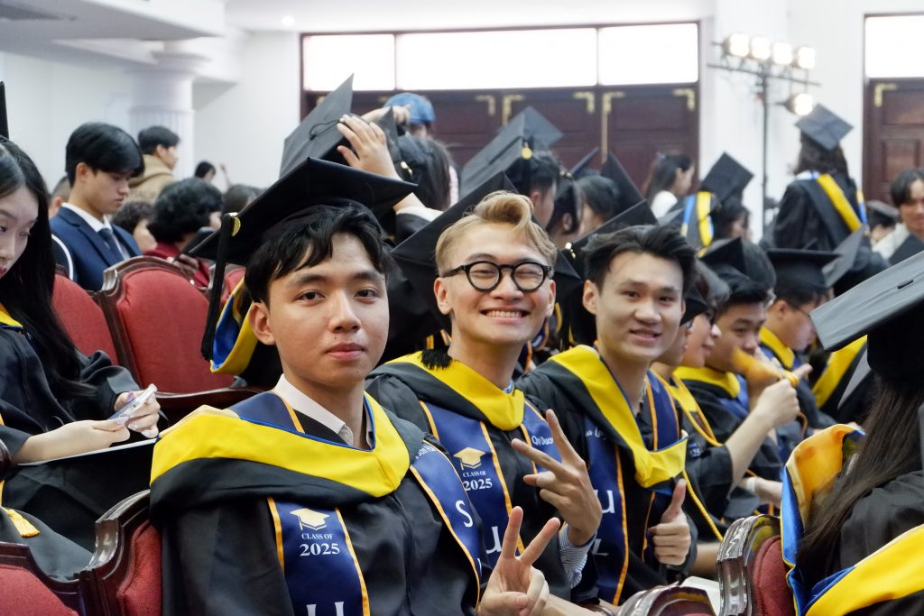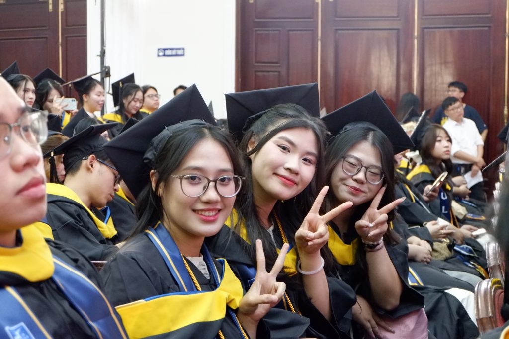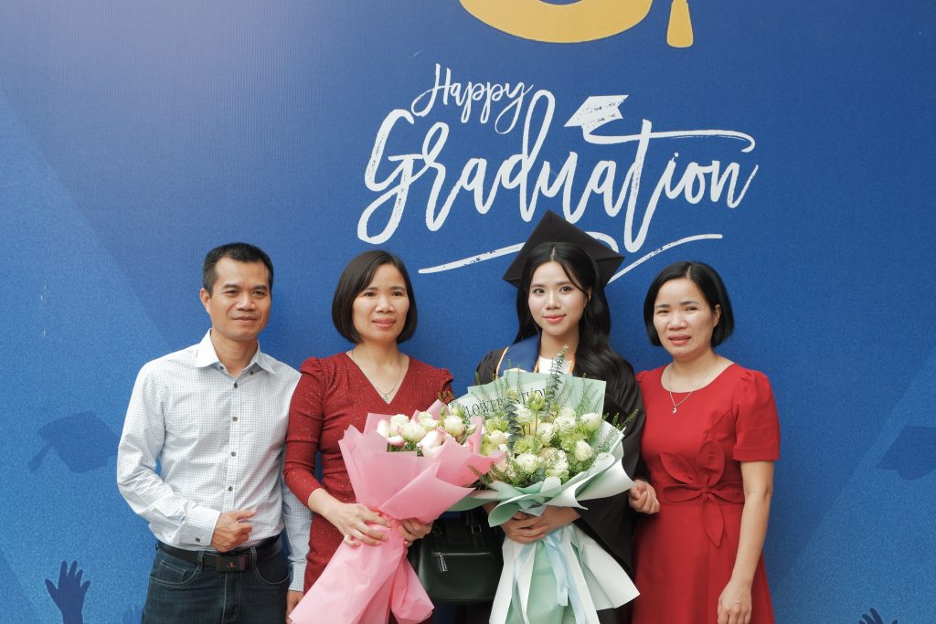 Phát biểu tại buổi lễ, Phó Hiệu trưởng Hà Lê Kim Anh đã gửi lời chúc mừng tới các tân cử nhân xuất sắc hoàn thành chương trình học và chuẩn bị bước sang một trang mới trong cuộc đời. Cũng trong bài phát biểu, cô nhắn nhủ: “Phía trước là một chặng đường mới với những cơ hội và thử thách đang chờ đón. Hãy mang theo bên mình kiến thức, kỹ năng, niềm đam mê và tinh thần học hỏi suốt đời. Đó chính là hành trang quý giá nhất”.