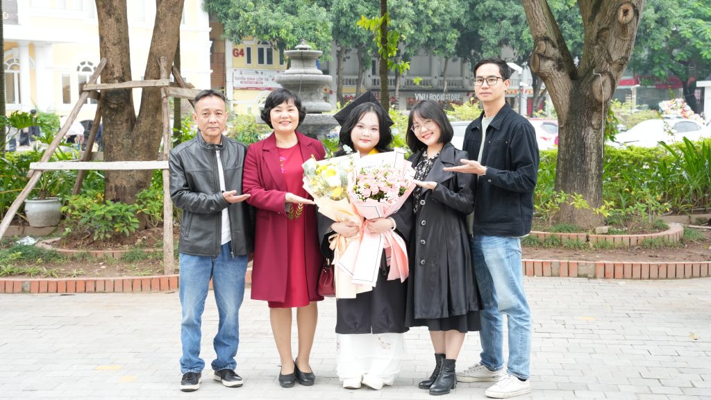 Đại diện cho 146 tân cử nhân,, tân cử nhân Phương Bích Vân chia sẻ cảm xúc của mình về hành trình của mình tại ULIS: “Khi nhin lại chặng đường đã qua, điều đọng lại trong mình không chỉ là điểm số hay thành tích, mà là những khoảnh khắc nhỏ bé nhưng đầy ý nghĩa.”. Bạn cũng gửi lời cảm ơn và sự biết ơn sâu sắc tới công lao sinh thành, nuôi dưỡng của cha mẹ và sự giúp đỡ, chỉ dạy của toàn các thầy, cô Trường Đại học Ngoại ngữ.