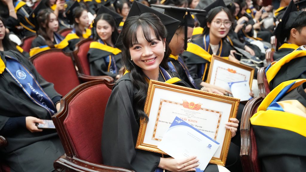 Chương trình khép lại bằng lễ trao bằng tốt nghiệp cho các tân cử nhân, do đại diện Ban Lãnh đạo Nhà trường và các đơn vị đào tạo thực hiện. Tấm bằng là thành quả xứng đáng cho những nỗ lực học tập, chứng nhận cho một hành trình đã kết thúc tốt đẹp.