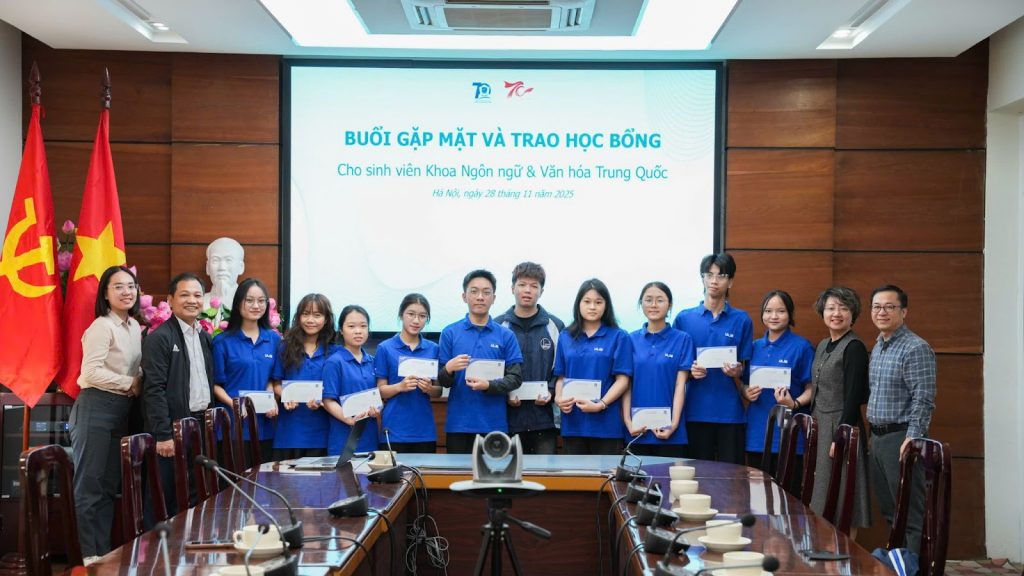 Ngày 28/11/2025, Phó Hiệu trưởng Hà Lê Kim Anh và Phó Hiệu trưởng Hoa Ngọc Sơn đã có buổi gặp mặt và trao học bổng cho 10 sinh viên Khoa Ngôn ngữ & Văn hóa Trung Quốc. Sự kiện cũng là cơ hội để Nhà trường và Khoa lắng nghe, chia sẻ và tiếp thêm động lực cho sinh viên trong quá trình học tập, trưởng thành.