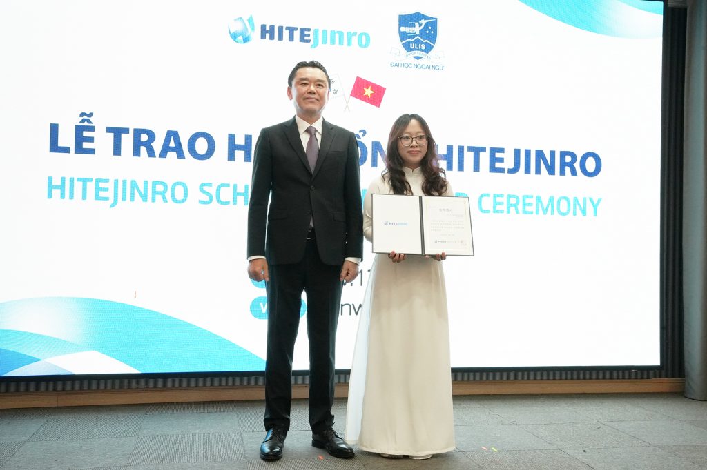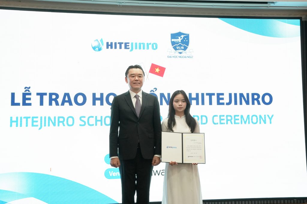 Nhờ sự phát triển của quan hệ ngoại giao Việt – Hàn, hoạt động đào tạo ngôn ngữ và văn hóa Hàn Quốc tại Việt Nam ngày càng nhận được sự quan tâm, hỗ trợ từ các doanh nghiệp Hàn Quốc. Quỹ học bổng HITEJINRO Việt Nam thuộc Tập đoàn HITEJINRO là một minh chứng cho điều đó. Được thành lập từ năm 2016, HITEJINRO đã tổ chức 5 kỳ trao học bổng cho sinh viên Trường Đại học Ngoại ngữ vào các năm 2017, 2019 và từ 2022 đến nay, sau giai đoạn gián đoạn vì đại dịch Covid-19.