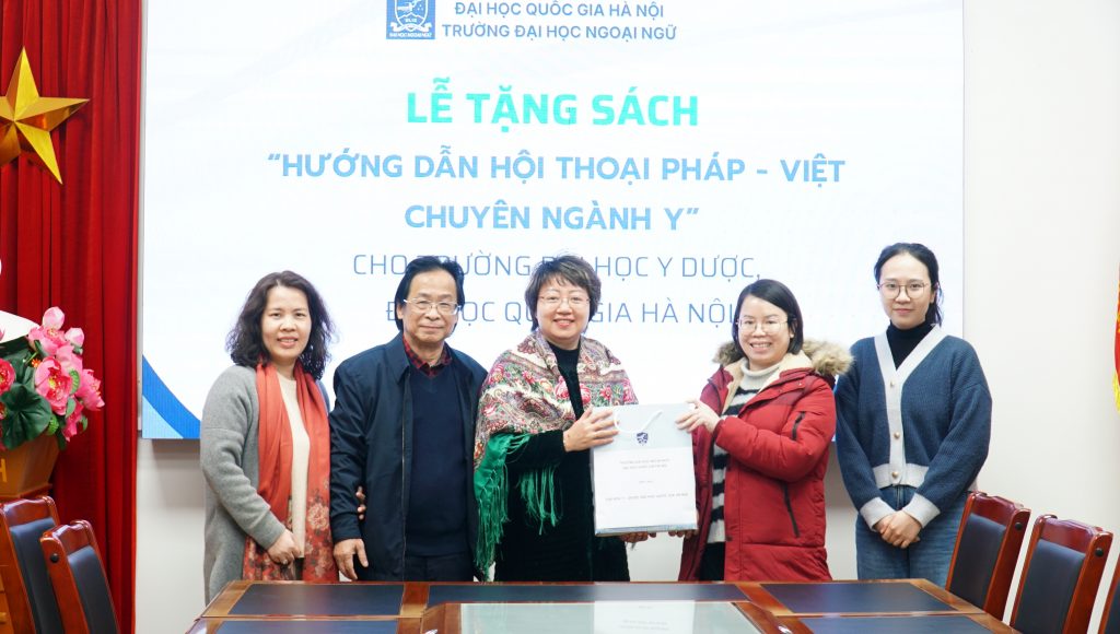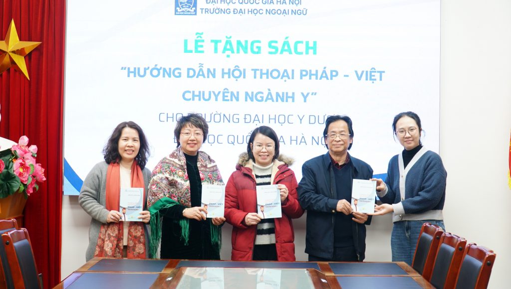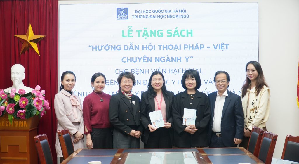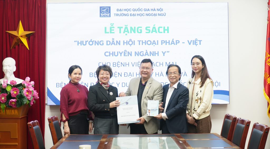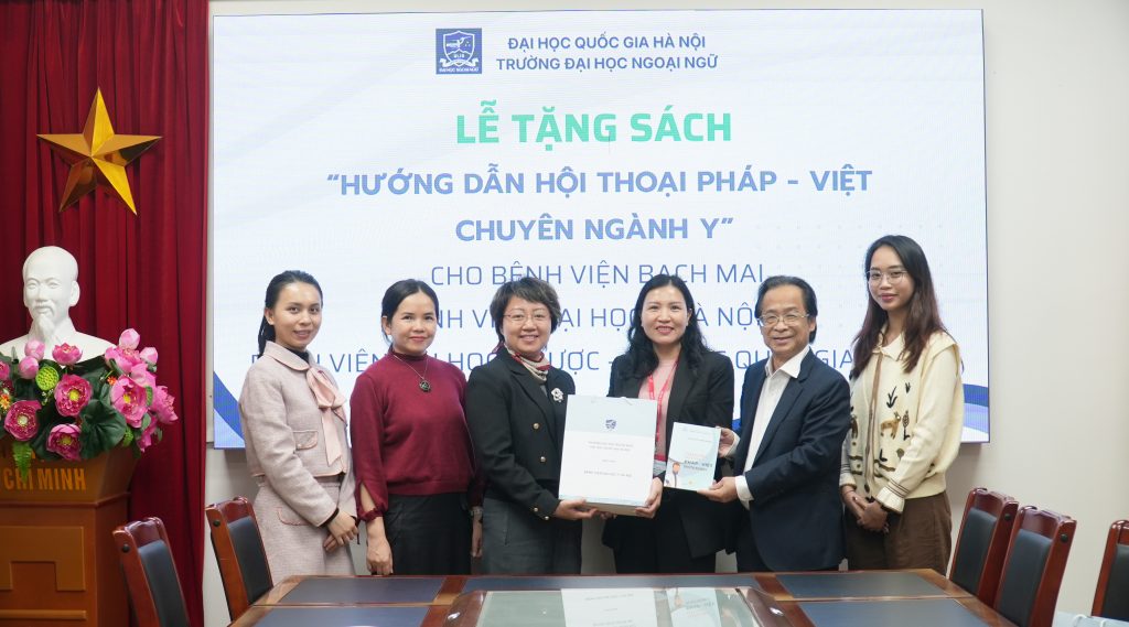 Trong tháng 01/2026, Trường Đại học Ngoại ngữ – Đại học Quốc gia Hà Nội đã trao tặng sách “Hướng dẫn hội thoại Pháp – Việt chuyên ngành Y” cho các đơn vị đối tác là: Bệnh viện E, Bệnh viện Bạch Mai, Bệnh viện Đại học Y Hà Nội, Bệnh viện Đại học Y Dược – ĐHQGHN, Trường Đại học Ngoại ngữ – ĐHQGHN. Đây là ấn phẩm do GS.TS. Nguyễn Lân Việt và PGS.TS. Nguyễn Lân Trung chủ biên nhằm hỗ trợ nâng cao năng lực ngoại ngữ cho đội ngũ y bác sĩ và cán bộ giảng dạy.