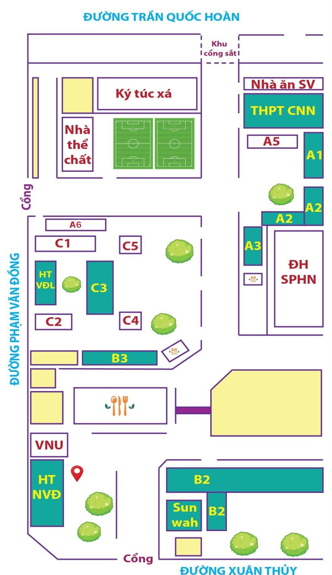 Trong khu vực này có các khu nhà C là giảng đường và văn phòng khoa