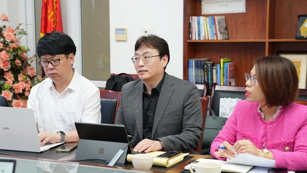 Trong buổi sáng, Trường Đại học Ngoại ngữ đã làm việc với Yoons English School nhằm cập nhật tiến độ Dự án hợp tác, trao đổi kết quả nghiên cứu thị trường và định hướng hợp tác trong thời gian tới. Giám đốc KNC&PT của Yoons English School Kyojun Lee đánh giá cao quy mô khảo sát, chất lượng báo cáo và nỗ lực của nhóm nghiên cứu ULIS. Phía Yoons ghi nhận các khuyến nghị liên quan đến mô hình PPP, đồng thời đề xuất mở rộng phân tích dữ liệu tập trung vào nhu cầu của phụ huynh và học sinh, mức sẵn sàng chi trả, mô hình dịch vụ ưa chuộng và ứng dụng AI trong chấm điểm bốn kỹ năng. Đại diện Yoons khẳng định những dữ liệu này có giá trị thực tiễn cao cho kế hoạch triển khai tại thị trường Việt Nam.