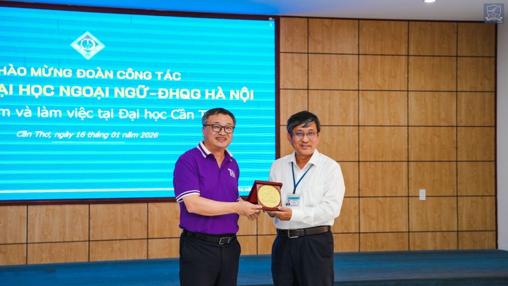 Chiều ngày 16/01/2026, tại Cần Thơ, đoàn công tác Trường Đại học Ngoại ngữ – Đại học Quốc gia Hà Nội đã có buổi tham quan và làm việc với Đại học Cần Thơ nhằm trao đổi, chia sẻ kinh nghiệm trong công tác quản trị đại học, đào tạo và nghiên cứu khoa học.