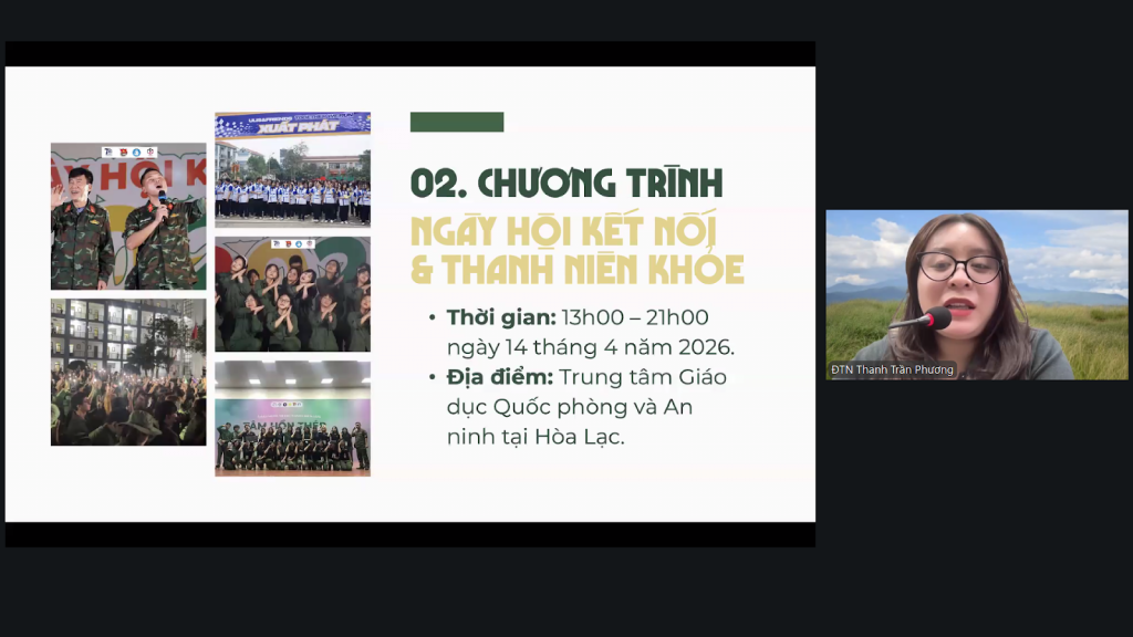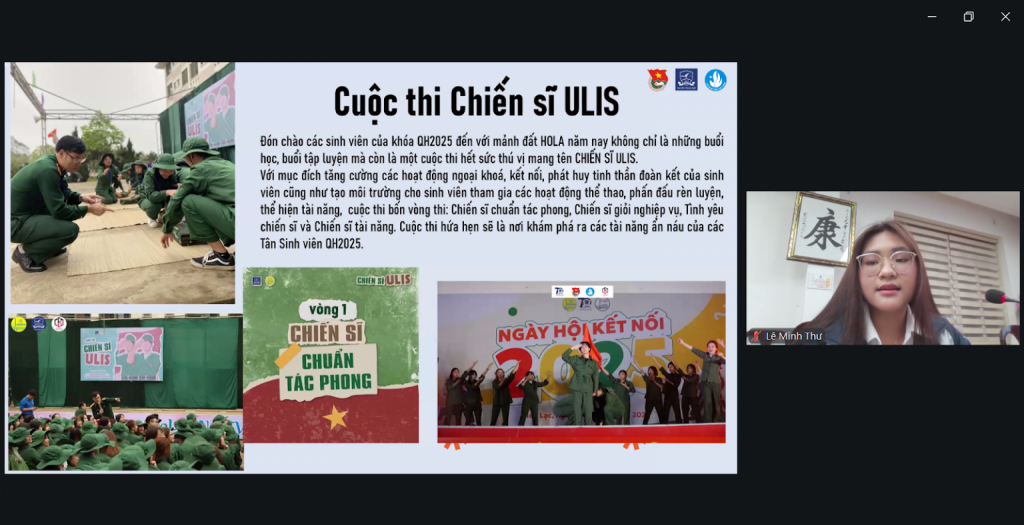 Ngày 12/3/2026, Trường Đại học Ngoại ngữ – Đại học Quốc gia Hà Nội đã tổ chức buổi tư vấn trực tuyến về chương trình học Giáo dục Quốc phòng – An ninh và Giáo dục Thể chất dành cho sinh viên khóa QH2025.F1 tại Hoà Lạc sắp tới.