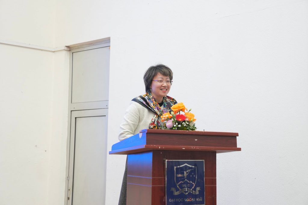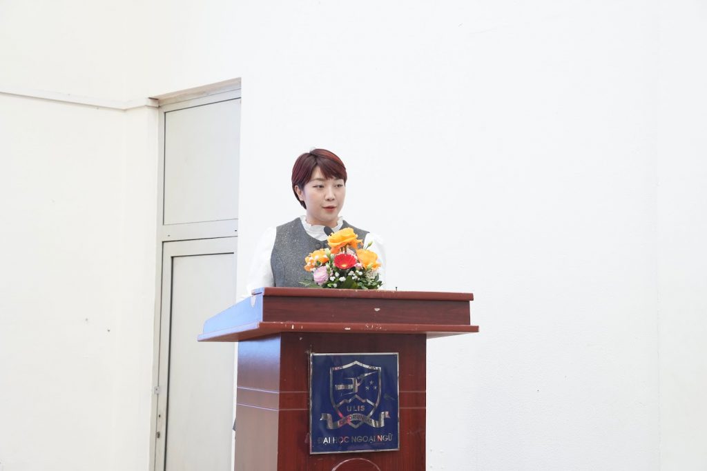Tiếp đó, Phó Hiệu trưởng Hà Lê Kim Anh trân trọng gửi lời cảm ơn tới các doanh nghiệp đã dành thời gian tham gia Ngày hội kết nối. Đồng thời, Phó Hiệu trưởng nhấn mạnh Trường Đại học Ngoại ngữ luôn quan tâm đến công tác định hướng nghề nghiệp và cơ hội việc làm cho sinh viên và bày tỏ kỳ vọng thông qua chương trình sinh viên sẽ có cái nhìn rõ nét hơn về thị trường lao động, góp phần tăng cường mối quan hệ hợp tác bền chặt giữa Nhà trường và các doanh nghiệp.