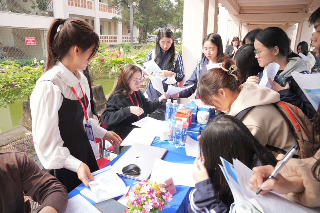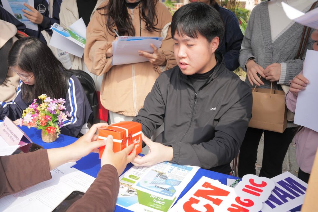 Cũng trong khuôn khổ chương trình, khu vực gian hàng của 15 doanh nghiệp đã thu hút sự quan tâm của đông đảo sinh viên. Tại đây, sinh viên được trực tiếp tư vấn về các vị trí việc làm, yêu cầu tuyển dụng cũng như cơ hội thực tập, làm việc trong môi trường doanh nghiệp.