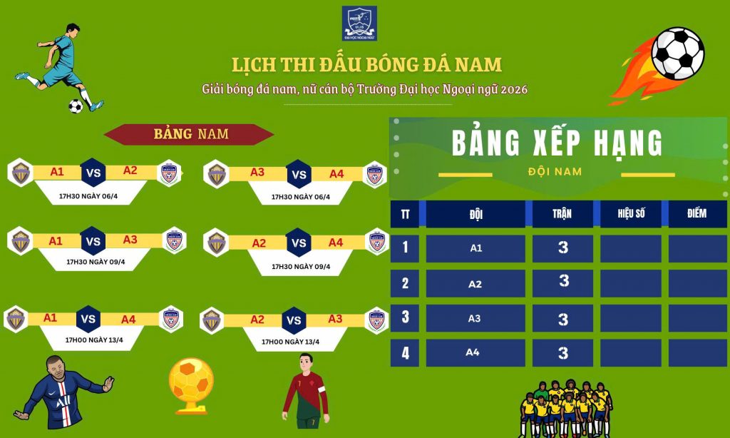 Ngày 01/4/2026, Trường Đại học Ngoại ngữ – Đại học Quốc gia Hà Nội đã tổ chức buổi bốc thăm xếp lịch thi đấu Giải bóng đá cán bộ ULIS Cup 2026, đánh dấu bước khởi động cho mùa giải năm nay.