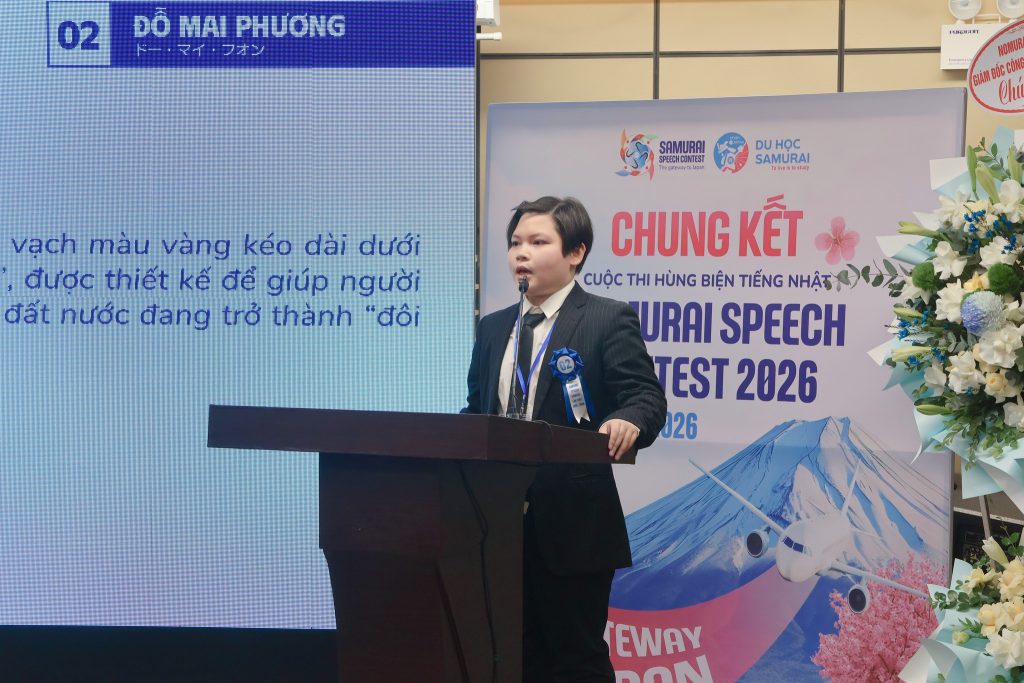 Vòng Chung kết là nơi hội tụ của bản lĩnh và cảm xúc. Các thí sinh không chỉ thể hiện khả năng hùng biện tiếng Nhật ấn tượng mà còn ghi dấu ấn bởi sự tự tin, tư duy sắc sảo và khả năng phản xạ linh hoạt trước các câu hỏi của Ban Giám khảo. Mỗi bài thi là một lát cắt sống động về Nhật Bản – đa dạng, nhân văn và đầy chiều sâu.